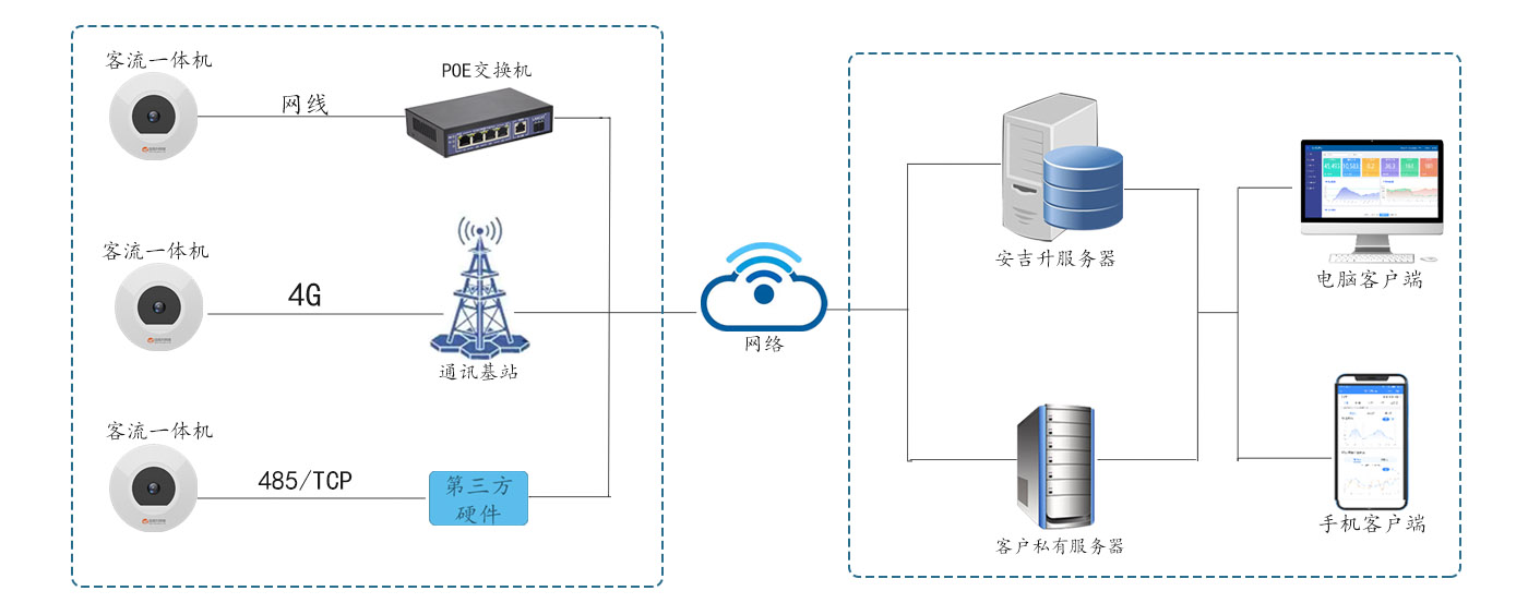 可以將客流數(shù)據(jù)通餐飲刷卡系統(tǒng)、收銀系統(tǒng)對接,用于每日就餐人數(shù)管理。